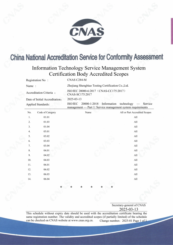 CNAS管理體系認證機構認可證書(shū) - 信息技術(shù)服務(wù)管理體系  英文版本 :