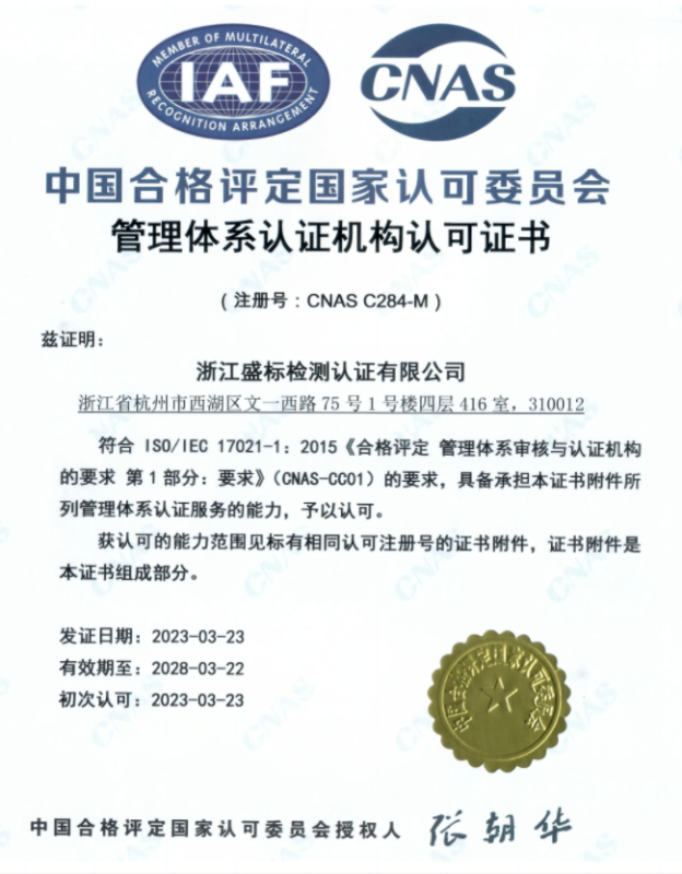 中國認可、國際互認!熱烈祝賀浙江盛標檢測認證有限公司通過(guò)國家CNAS認證機構認可!