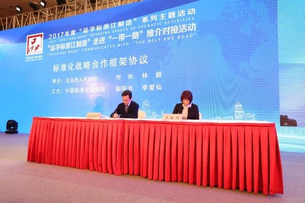 10月21日下午,主題為“品牌工程助力國家戰略,‘浙江制造’助推‘一帶一路’融合共贏(yíng)”的“品字標浙江制造”走進(jìn)“一帶一路”推介對接活動(dòng)在浙江省義烏市舉辦。在浙江省副省長(cháng)朱從玖、贊比亞駐我國大使等中外嘉賓的見(jiàn)證下,李?lèi)?ài)仙副院長(cháng)代表中國標準化研究院與義烏市人民政府簽訂了標準化戰略合作框架協(xié)議。該協(xié)議旨在為義烏全面實(shí)施標準化戰略,共同打造“標準城市”。